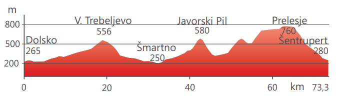 Izpred parkirišča pred Kulturnim domom Dolsko se peljete v smeri proti Ljubljani čez Dolsko ter zavijete na levo proti Lazam čez Savski most. Od tam se pot odcepi na desno proti Podgradu, kjer se vozite ob železniški povezavi Zidani Most-Ljubljana. Vmes si lahko spočijete oči na sotočju treh rek – Ljubljanice, Save in Kamniške Bistrice. V Podgradu pri gostilni Pecelj zavijete levo v podvoz pod železnico in nato nadaljujete po dolini potoka Besnica vse do prevala na Velikem Trebeljevem. Po vzponu vas čaka prijeten spust po ovinkasti cesti do Šmartnega pri Litiji, nato pa se pot dviguje vse do prevala Javorski Pil, od koder se odpre čudovit razgled na Moravče, Gabrovko in Moravško Goro, posejano z vinogradi in zidanicami. Po spustu, ki vodi v Moravče se prične težji del poti, saj se preko naselja Dole pri Litiji, pot vzpne vse do najvišje točke 760 m. Z najvišje točke celotne kolesarske poti pa se po 8 km dolgem spustu spustite za 450 m proti Strmcu. Že ste v dolini, do trga v Šentrupertu vas loči le nekaj sto metrov.