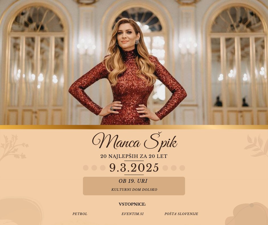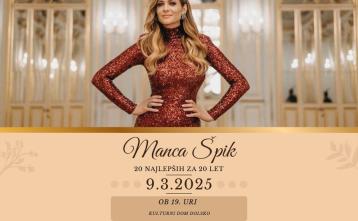 Manca Špik, ena najprepoznavnejših slovenskih pevk vam pripravlja prav poseben glasbeni večer, ki je uvod v njeno turnejo 20 najlepših za 20 let, s katero obeležuje dve desetletji bogate glasbene kariere.